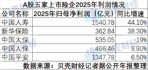 过去一周,五家A股上市保险公司(中国人寿、中国平安、人保财险、中国太保、新华保险)的2025年“成绩单”相继出炉。自然而然,随着股市的回暖,五家上市险企归属于母公司的净利润逐年增长,利润总额突破4000亿元。贝壳财经记者注意到,五家上市保险公司业绩亮眼,去年加大了股票投资力度,加大了资本市场波动对利润的影响。从寿险业务来看,个人保险渠道的保费增速远低于银行销售渠道的保费增速,使得保险成为多家保险公司拉动保险业务增长的主要险种。此外,上市保险公司也“时常”提及自己的投资以及年度报告中人工智能(AI)领域的项目。智能化转型已成为保险行业发展的重要趋势。 【资产】仓位一次性加仓!投资收益拉动盈利增长,导致季度盈利大幅波动。 2025年,五家上市险企归属于母公司的净利润合计约为4252.91亿元。其中,归属于中国人寿母公司的净利润增速最高,同比增长44.1%至1540.78亿元。归属于新华保母公司净利润362.84亿元,同比增长38.3%。中国太保、中国人保、中国平安归属母公司净利润分别增长19%、8.8%和6.5%。去年资本市场回暖,五家上市保险公司增资他们的股票投资。投资收益的增加是这些保险公司利润增加的共同原因。贝壳财经记者透露,去年五家上市保险公司的投资收益较上年有所增长。其中,新华保险总投资回报率最高,上涨0.8个百分点至6.6%,中国人寿上涨0.59个百分点至6.09%,中国太保和中国人保各上涨0.1个百分点至5.7%。中国平安公布其整体投资回报率,增长0.5个百分点至6.3%。总投资回报率上升的原因是保险公司加大了进入市场的步伐。数据显示,2025年末,五家上市险企股权投资金额逐年增长,合计约2.51万亿元,截至2024年末同比大幅增长75%。2025年末,5家上市保险公司股权投资占比较2024年底有所上升。其中,平安股票投资指数、新华保险股票投资指数连续两年保持高位,2025年底达到11.8%左右。华泰证券研报显示,2025年,7家主要上市保险公司(除上述5家A股上市保险公司外,还有也是中国太平保险公司和在香港上市的中国太平保险公司)FVOCI股票(基本上可以认为是高股息股票)的配置规模预计将增加6338亿元人民币至1.2万亿元人民币,比2024年的3120亿元人民币增加一倍多。未来几年各配置4000亿至600亿美元。0亿元。虽然上市保险公司受益于较高的投资收益,但值得注意的是,资本市场的大幅波动也将导致上市保险公司季度利润的大幅波动。例如,中国人寿2025年第一季度归属于母公司的净利润约为1678亿元,较上年全年增长1%。 78亿元的利润仍然很高,这意味着中国盈利。”在中国人寿财报发布会上,中国人寿总裁李明光表示:“公司2025年第四季度的盈利为负,反映了全年业绩与前三季度的差异。”其主要原因是资本市场出现结构性调整,公司持有的部分股票型基金在第四季度出现回调。。 2025年。”李明光表示,这种波动有一部分是渐进的,反映了资本市场的变化。寿险公司具有长期、跨周期的经营特点,建议减少对一次性一季报盈利的扩张性解读。在这样的市场环境下,上市保险公司今年将如何配置资本资产?新华社副社长秦洪波评论了中国资本市场的中长期发展前景,包括经济形势持续好转、业务持续升温等。人保财险副总经理蔡赤伟在公司财报发布会上表示,资本投资对于国家战略方向,特别是关系到新产能的投资更加重要,要稳定和提升投资业绩,公司将继续关注OCI(价值变化计入其他综合业务)。高收益)和高股息股票的配置。据贝壳财经记者观察,股市呈现复苏态势,上市保险公司资产表现良好,参保保险公司正在构建更加均衡、业绩长期稳定、具有市场竞争力的股票投资组合。带动多家上市险企保费增长的主要险种太保寿险在年报中表示,报告期内承保保险业务快速增长,占个险渠道首年定期保费近60%,成为新定期保费的重要支撑。太保寿险2025年市场份额较上年大幅升值,新增定期给付险种占比提升至50.0%。 2025年分红保险公司初始保费收入新华保险公司营业收入376.04亿元,比上年增长33%。年报显示,2025年四季度分红险公司保费收入达918.87亿元,同比增长41%。年报显示,公司强化权益类产品。我们正在构建差异化的分红账户体系并进行研发,以提高分红产品的吸引力。这与行业趋势是一致的。据中国保险行业协会相关统计,分红保险公司原保费收入到2025年将达到9042亿元,同比增长18.06%,成为人身保险行业增长最快的业务。开元证券研报分析,在低利率环境下,分红保险兼具保证收益和可变收益,大大提高了产品的吸引力,成为存款转移的中流砥柱。与此同时,监管政策支持保险公司改进可变产品以应对长期利息损失风险,并重新推出分红型重大疾病保险,为行业创造了新的机遇。 “提高分红险比例,将降低保险公司差别损失风险,减少财务报表指标波动。”新华保险总裁庞兴峰在业绩发布会上表示,推动分红保险转型是防范利差损失风险的重要举措。分红式保险产品也是让客户分享公司发展成果最有效的一类产品。 “不过,从价值率来看,分红保险确实比传统保险略低,将对新业务价值和价值率的增长带来一定的挑战。我们采取了一系列措施,推动新业务价值持续稳定增长。” 【渠道侧】银行销售渠道增速远高于人身险渠道增速。从渠道来看,各上市险企均呈现出银行费率渠道增速远高于人身险渠道增速的趋势。例如,2025年新